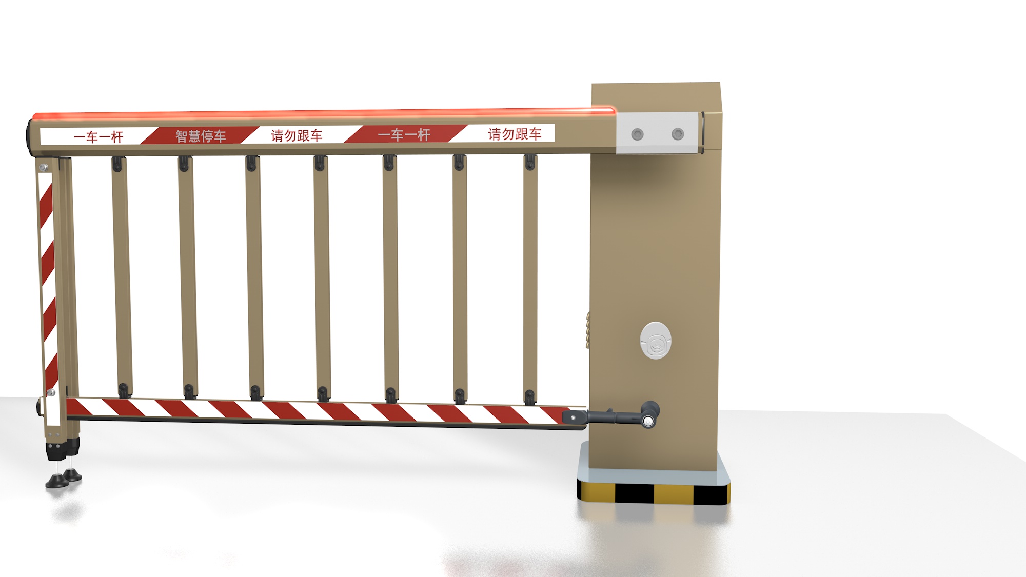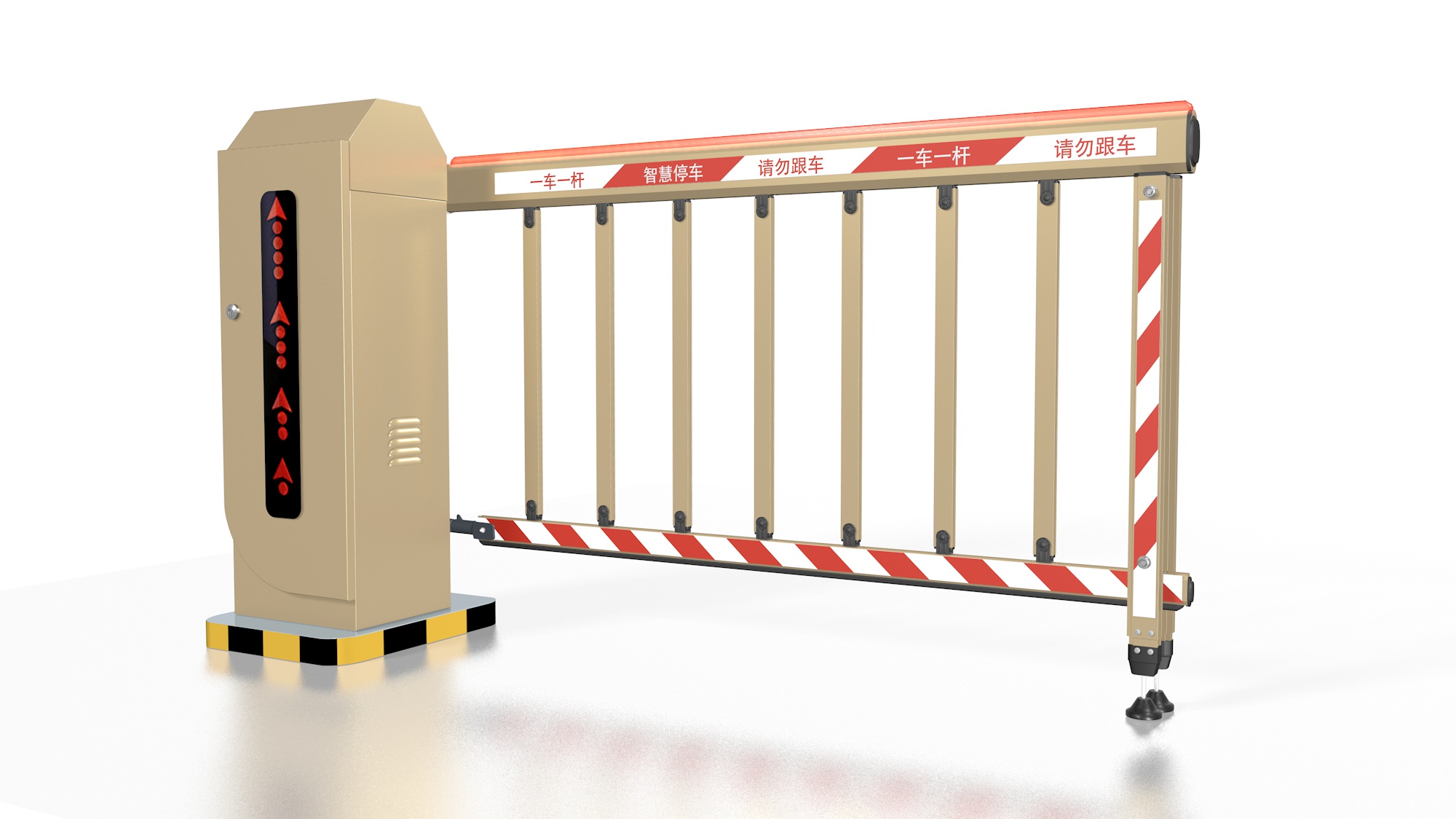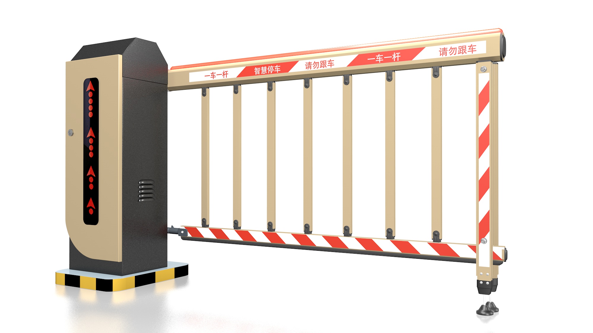 柵欄道閘是直桿道閘的一種衍變,分兩欄桿或三柵桿,擋桿由一個(gè)直桿變成了可以收縮的柵欄式,展開的柵欄可以將下方區(qū)域也遮擋起來,